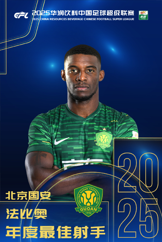 2025赛季,32岁的法比奥30场中超沿途首发,孝敬28球4助,以1球的上风力压卡扎伊什维利,糊口初次斩获中超金靴。法比奥也匡助国安最终位列中超积分榜第4名,况且随队斩获足协杯冠军。