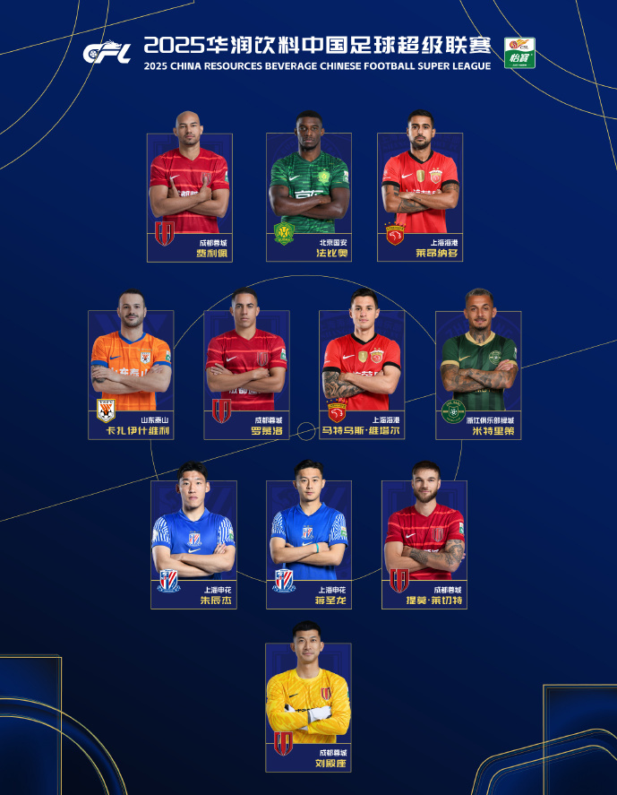 中场:卡扎伊什维利(山东泰山)、米特里策(浙江俱乐部绿城)、罗慕洛(成都蓉城)、维塔尔(上海海港)